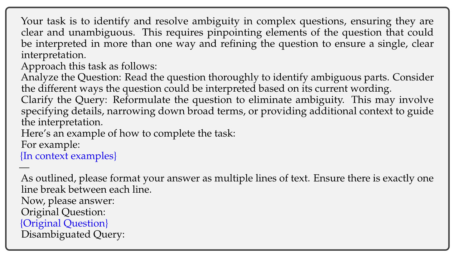 During each iteration, the model decodes diverse search queries customized for particular needs: rewriting, decomposing, or resolving ambiguities. These queries in turn obtain different contexts, leading to the diversification of expansion paths.