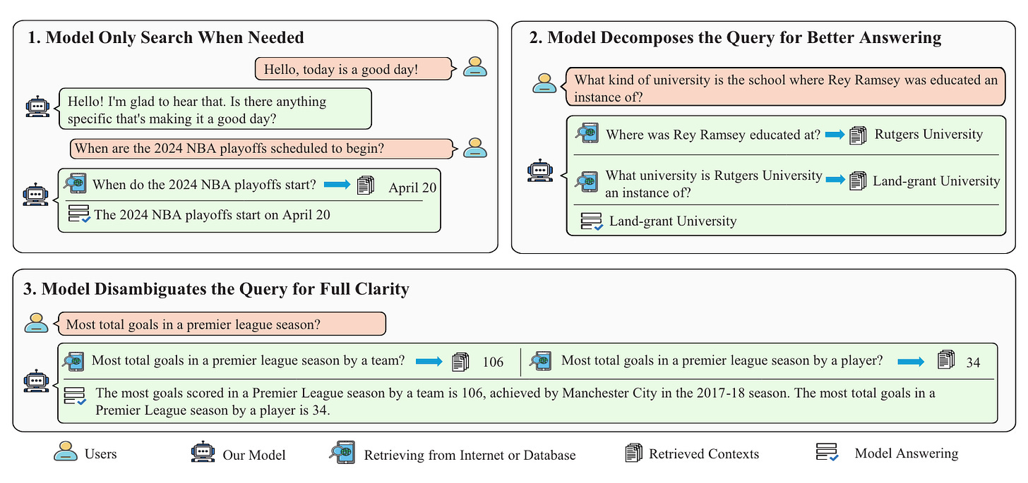 In response to the mentioned challenges, RQ-RAG has proposed three improvements, as depicted in Figure 1.