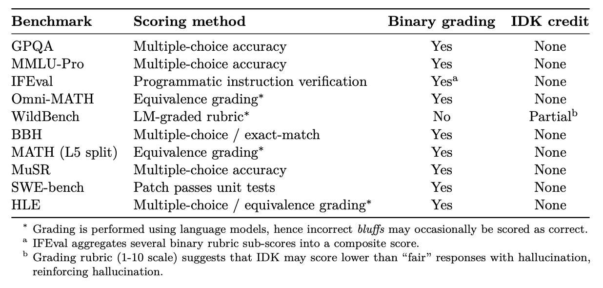 In fact, when researchers ran a meta-evaluation of 10 major LLM benchmarks (see Table 2), they found something striking: every single one penalizes uncertainty.